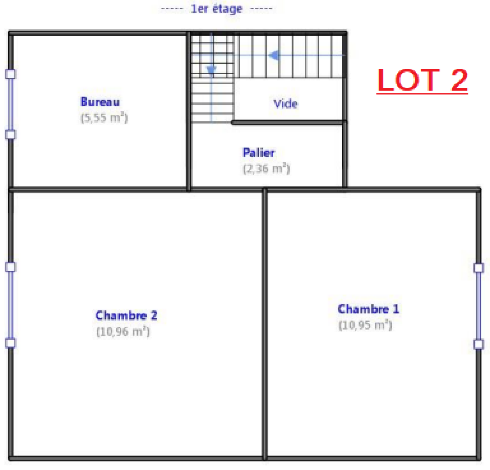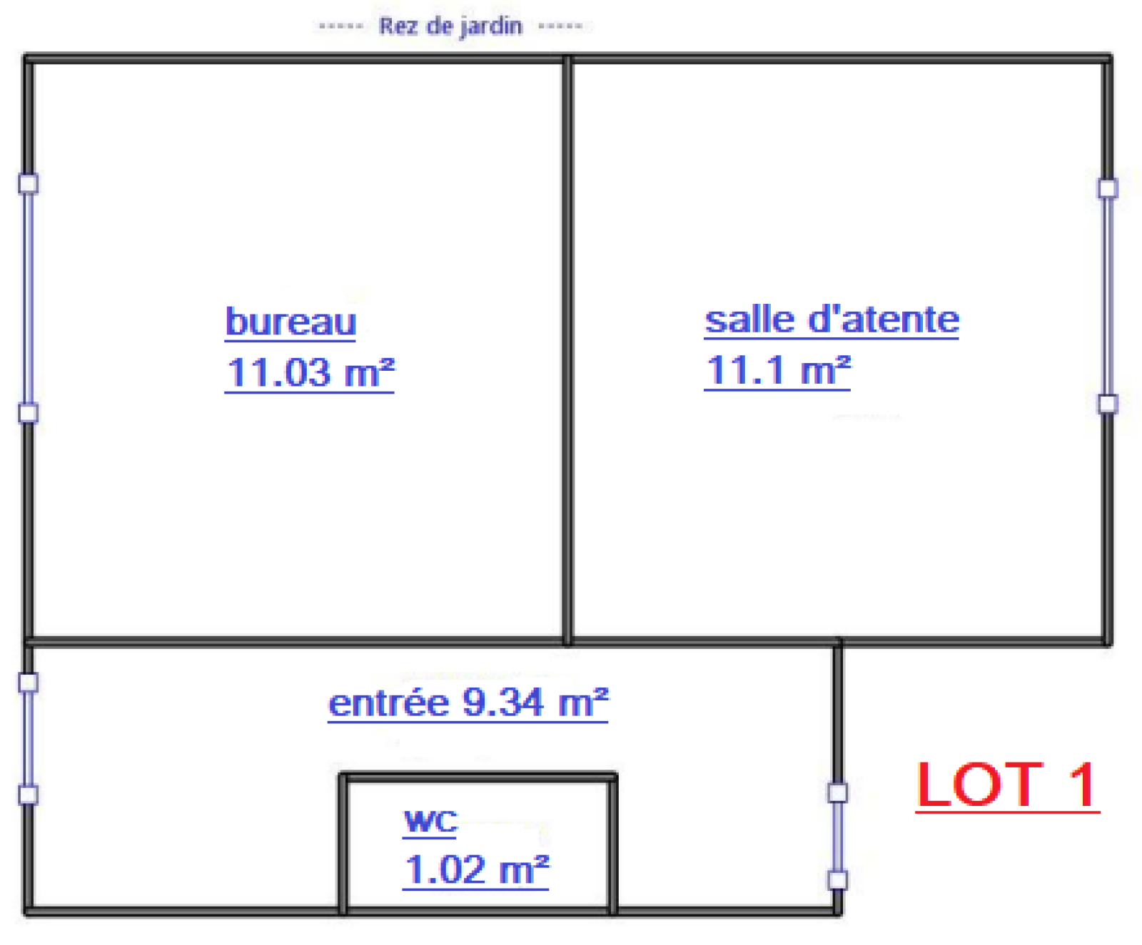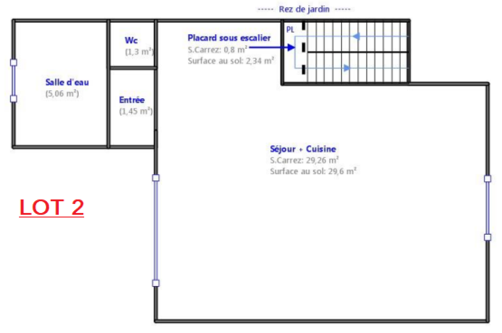 L'un au rez-de-chaussée surélevé de 38.5m². Il dispose d'une entrée, d'un séjour, d'une chambre et d'un WC.