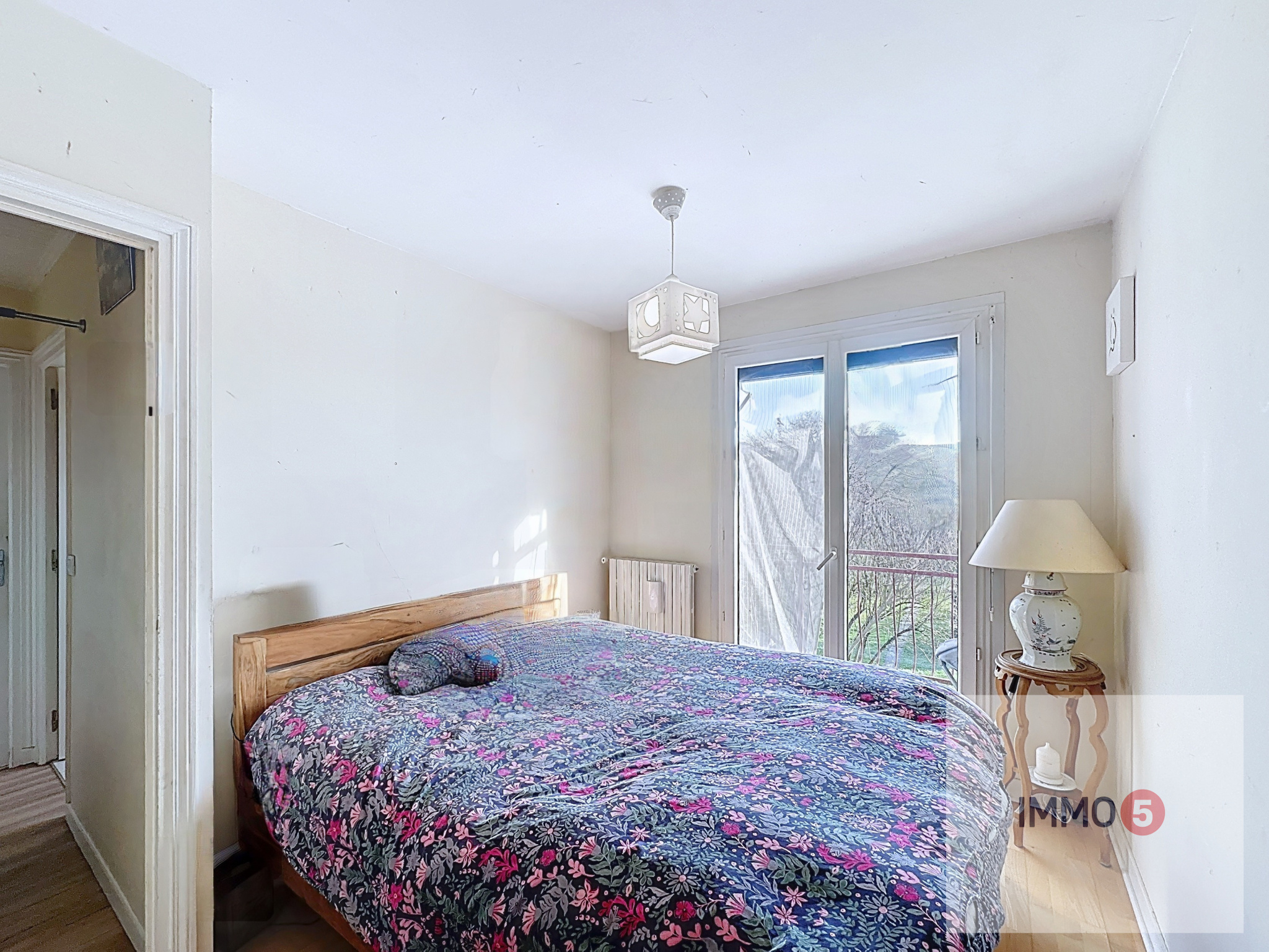 L'appartement se compose d'une entrée avec rangements, un grand séjour-salle à manger avec cheminée donnant directement sur un premier balcon, une cuisine fermée aménagée avec accès également au même balcon, deux chambres donnant cette fois sur un second grand balcon, une salle de bains, un wc.