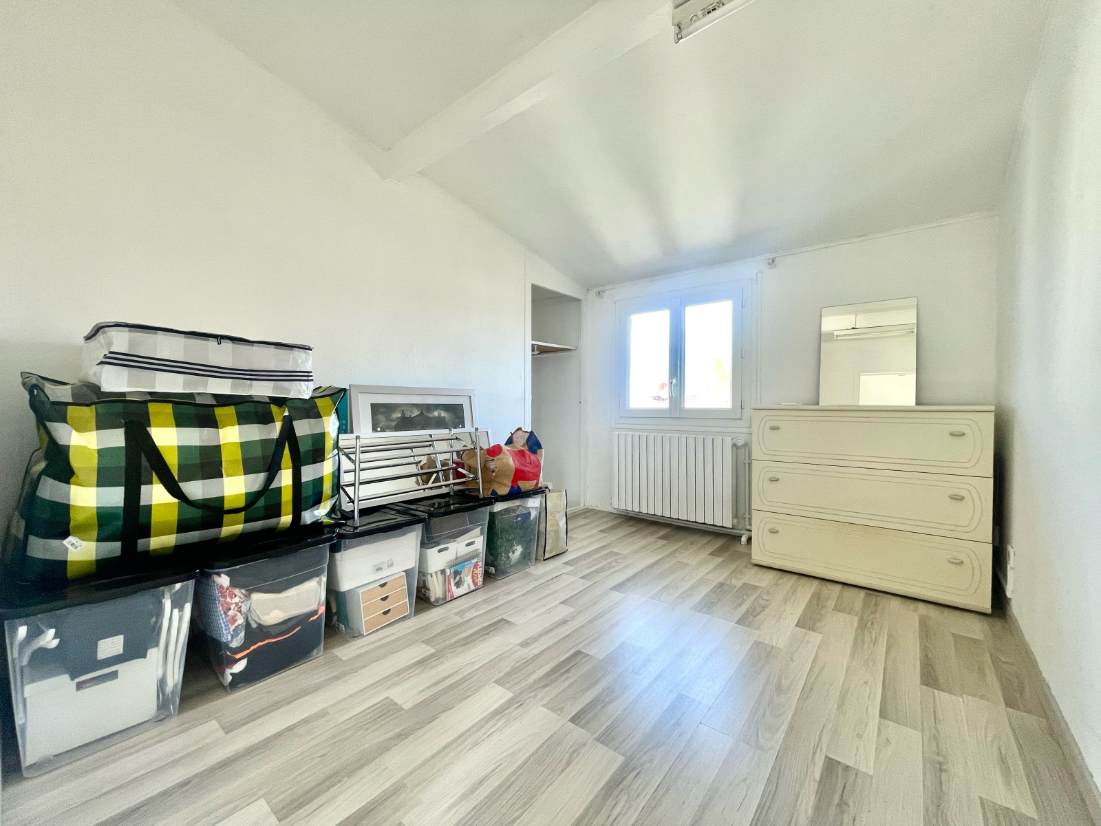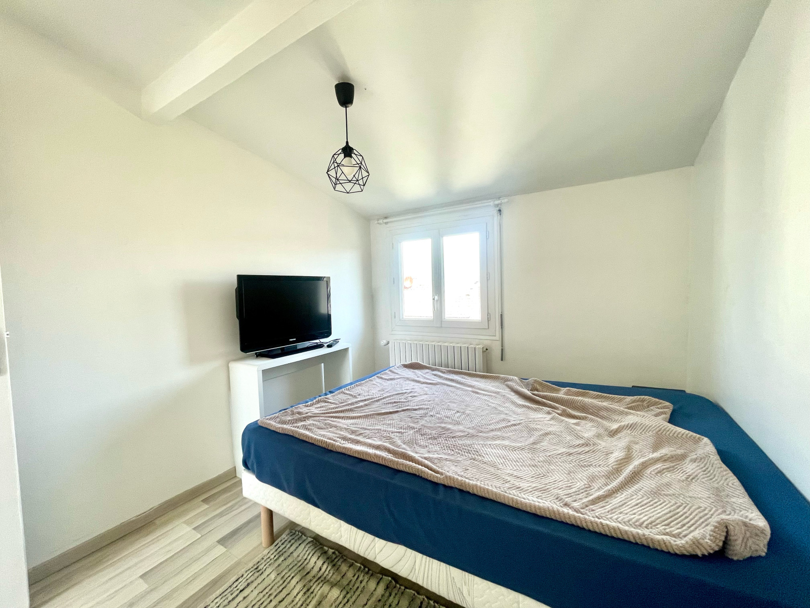 A l'étage, 2 grandes chambres et une salle de bain avec WC.