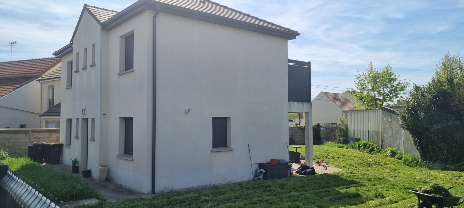 Coubron (93470)Pavillon de 2016 totalement indépendant offrant : entrée, double séjour sur terrasse, cuisine équipée, bureau, salle d'eau avec wc, cellier, à l'étage : dégagement, 3 chambres dont une avec dressing donnant sur balcon, salle de bains avec wc (baignoire et douche), chauffage central au gaz, climatisation dans le séjour. Le tout sur une parcelle de terrain de 625 m².