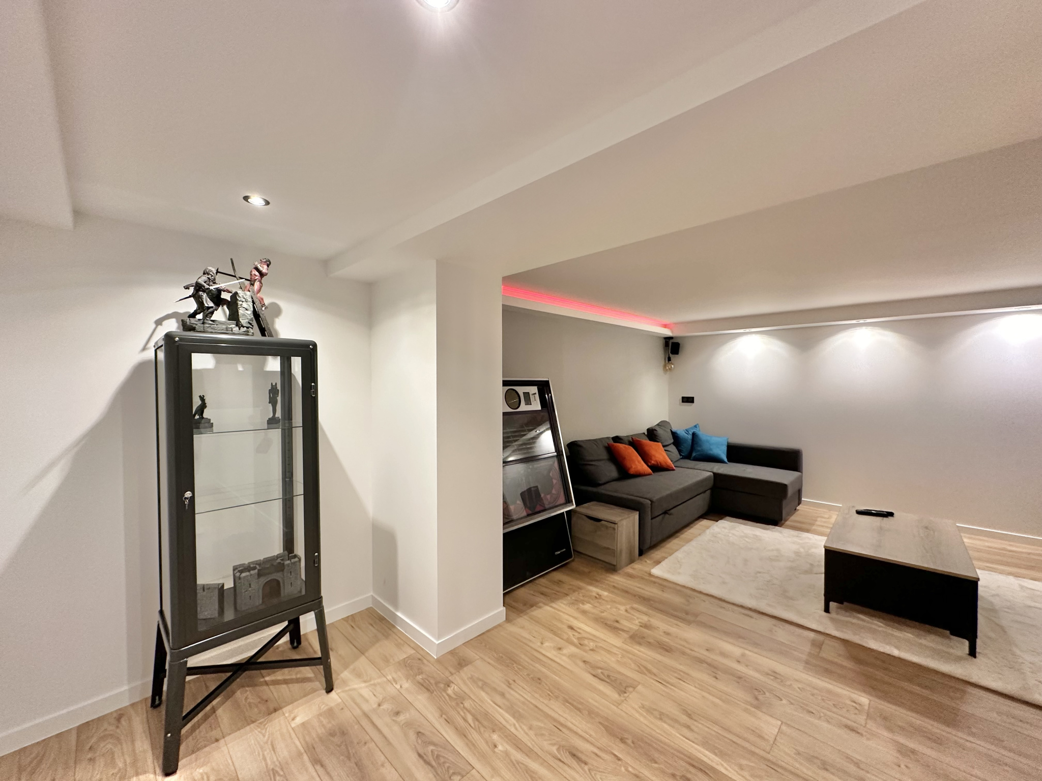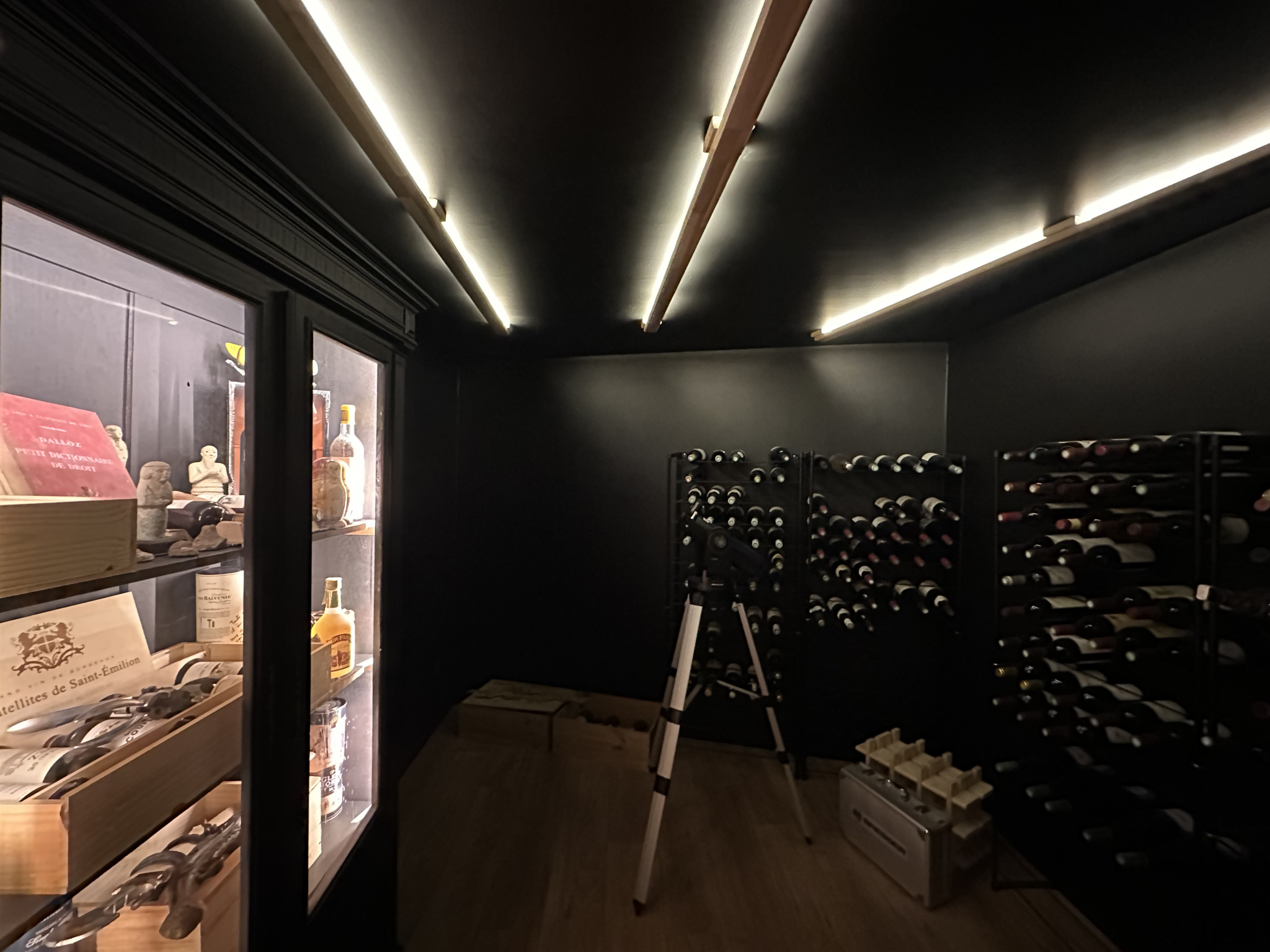 Le sous-sol aménagé propose une salle de sport, un espace douche, une cave, une salle de cinéma, une buanderie et une chaufferie. Deux garages privatifs et une aire de stationnement complètent l’ensemble.