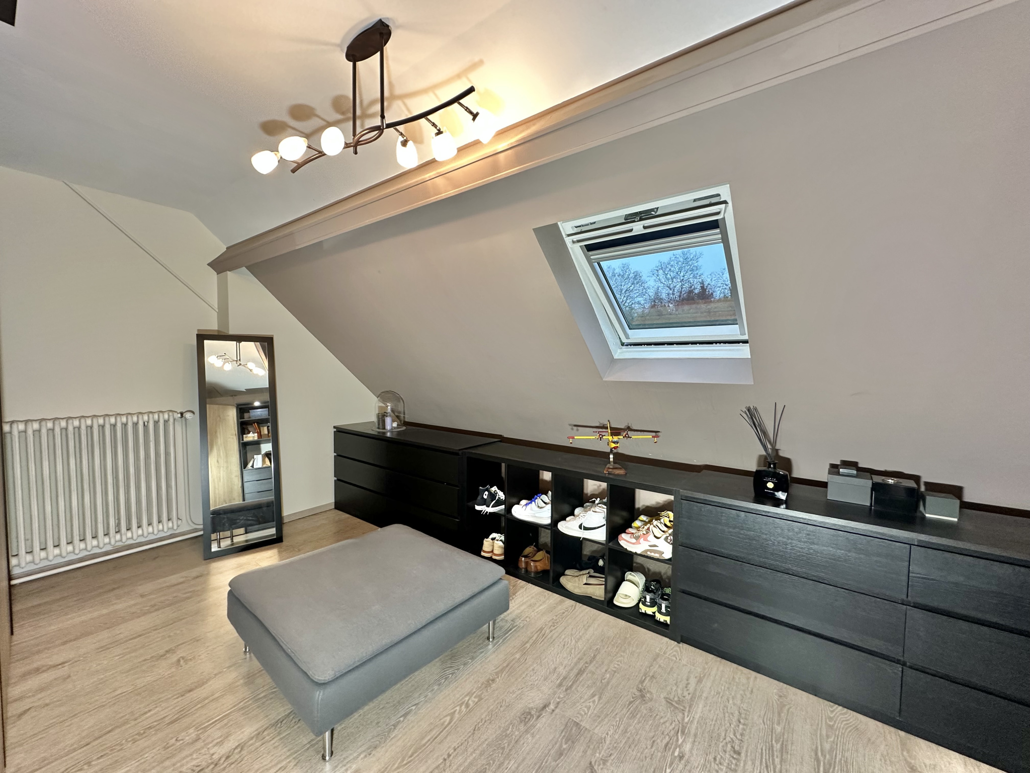 À l’étage, un palier dessert deux chambres supplémentaires, un dressing, un bureau, une salle d’eau et des WC.
