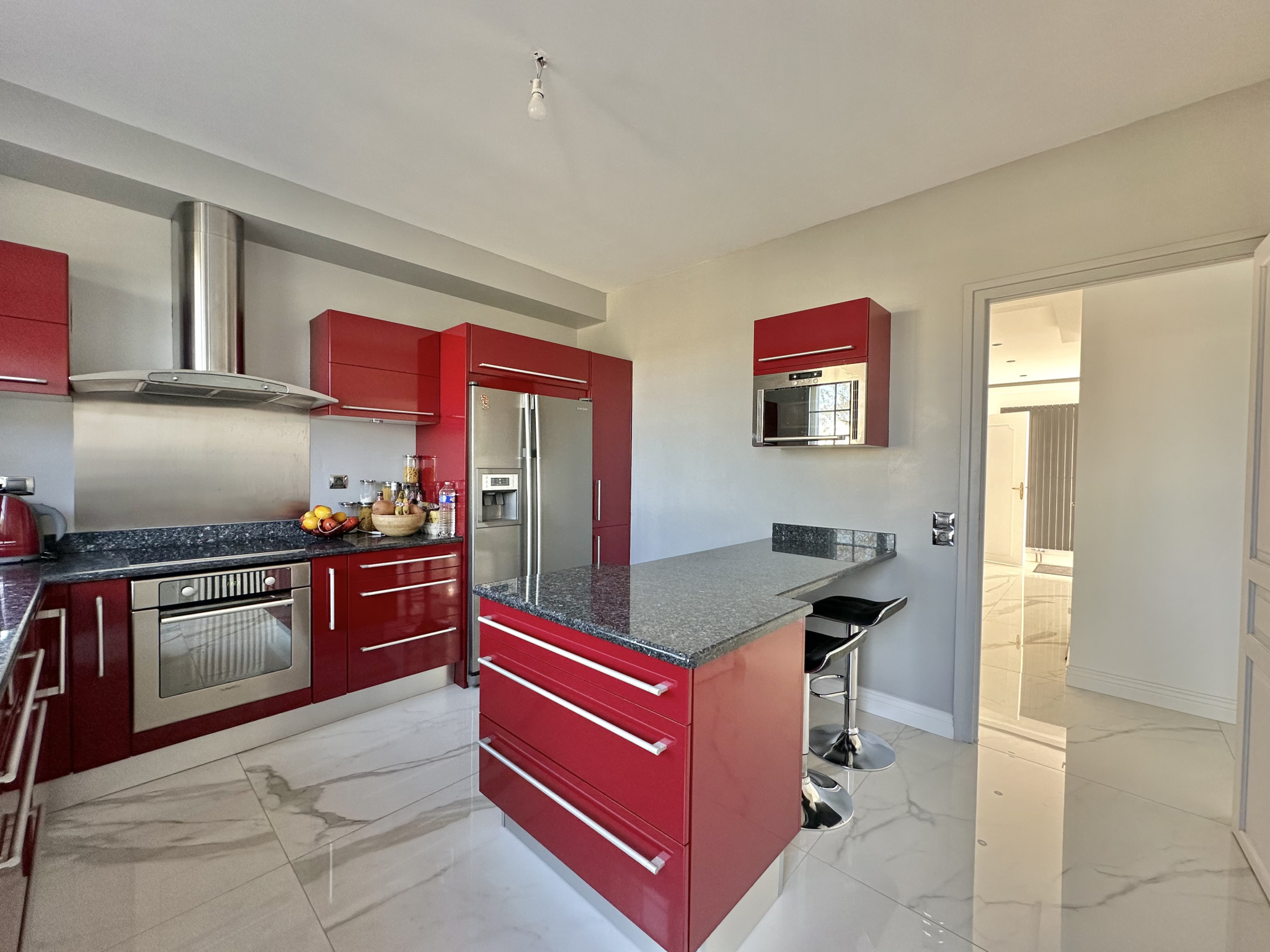 Au rez-de-chaussée, un vaste hall d’entrée vous mène vers un bureau, un double séjour lumineux de 50 m² avec 5 portes-fenêtres donnant sur la terrasse, le jardin, et la piscine extérieure 10 x 5m chauffée avec dôme, idéale pour profiter de baignades toute l’année. La salle à manger est attenante à une cuisine séparée, entièrement équipée avec un îlot central. Trois chambres, une salle de bains et des WC indépendants avec point d’eau complètent ce niveau.